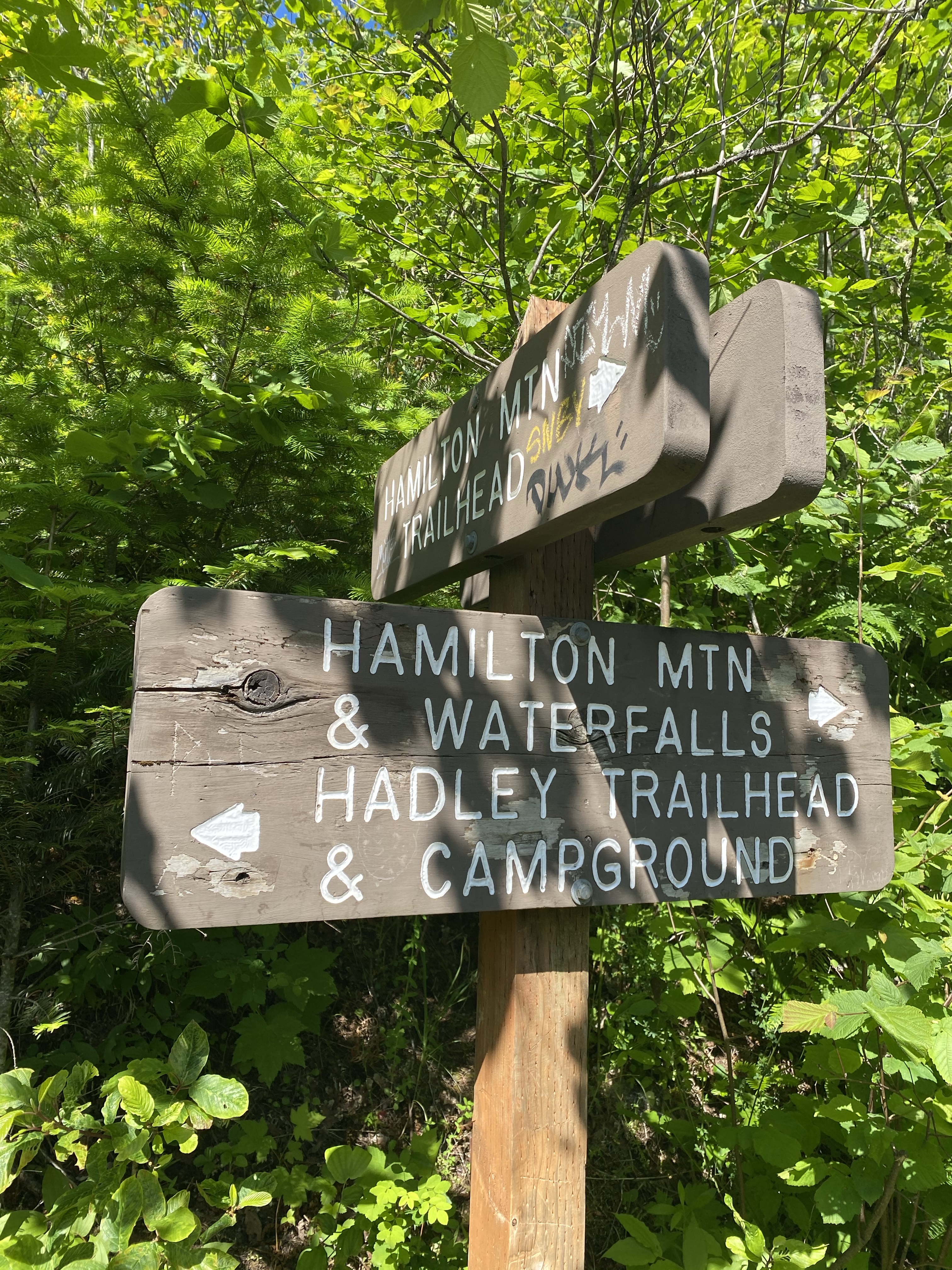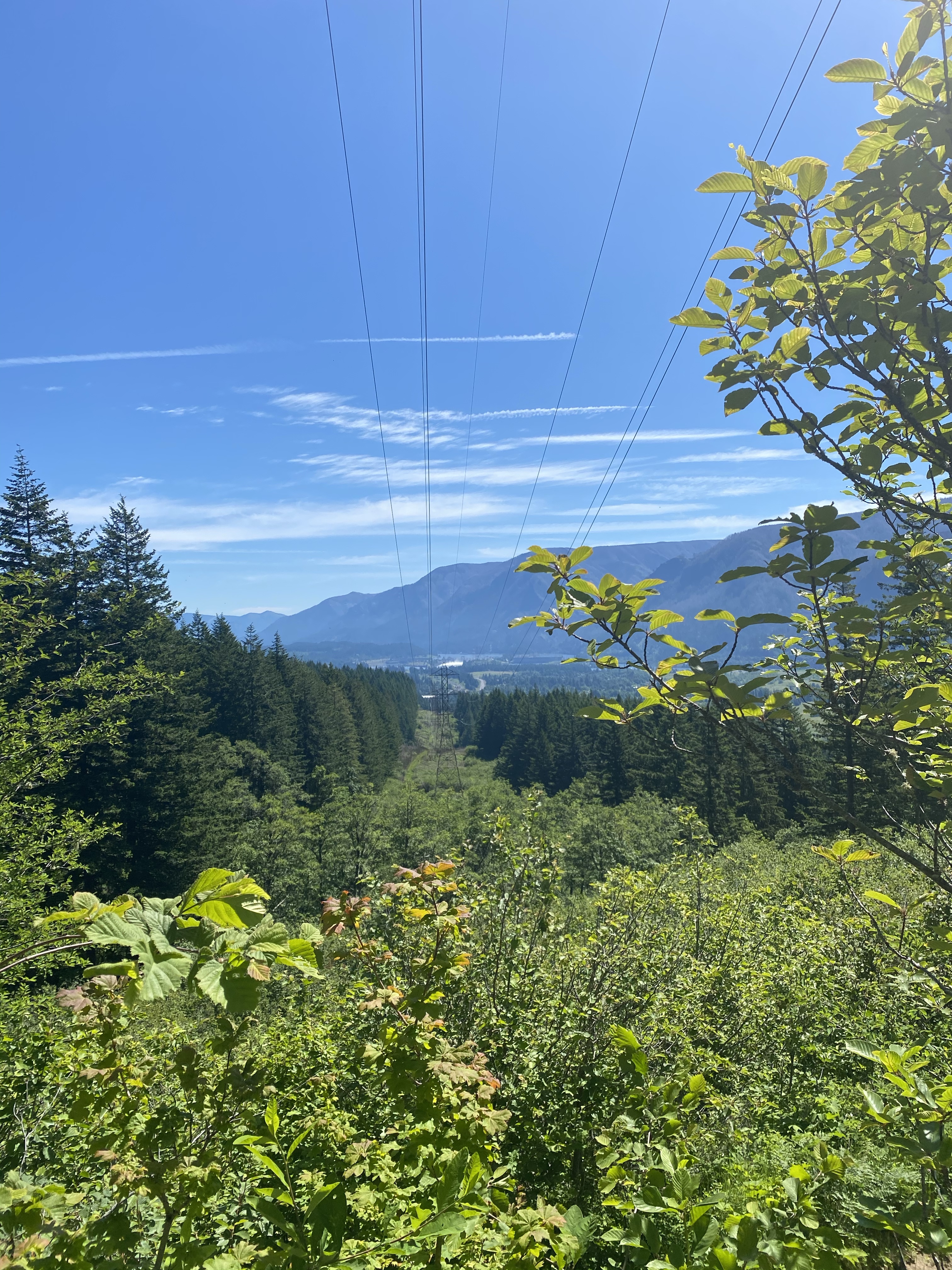 There are two ways to begin this hike if you are starting from the overflow parking. If you turn right at the parking lot entrance and walk downhill back to the main lot you can pick up the beginning of the Hamilton Mountain Trail. You can also turn left and go up through the campground utilizing the Hadley Trail. This will take you through a second growth fir canopy and lead you eventually up under some powerlines to a picnic table with a great view of the Gorge. Eventually, connecting you to the Hamilton Mountain Trail at around .6 miles in (veer to the left to continue to the falls). We used this trail to return to our car and loved it as it was less crowded than following Hamilton Mountain Trail back to the main parking area.