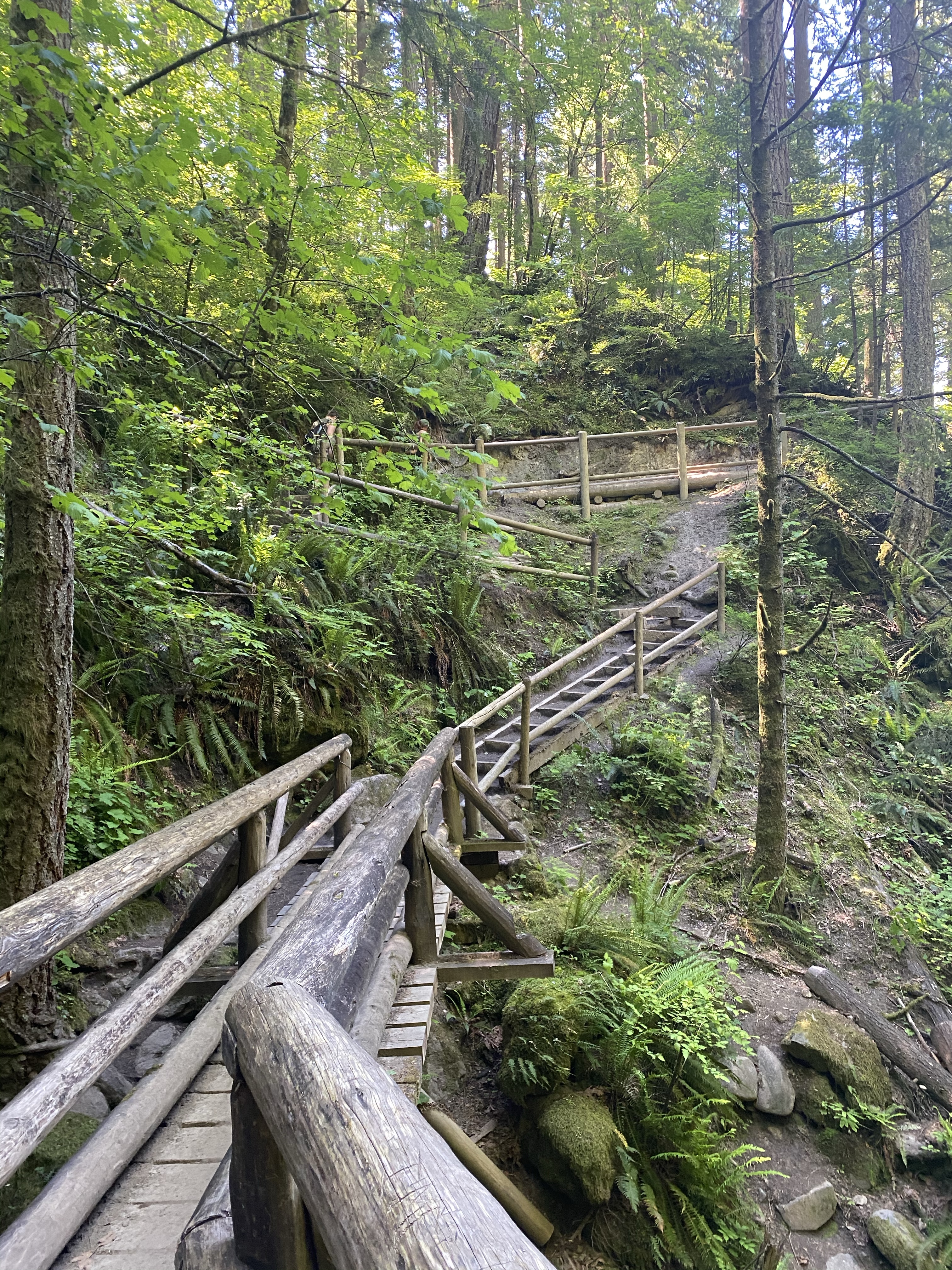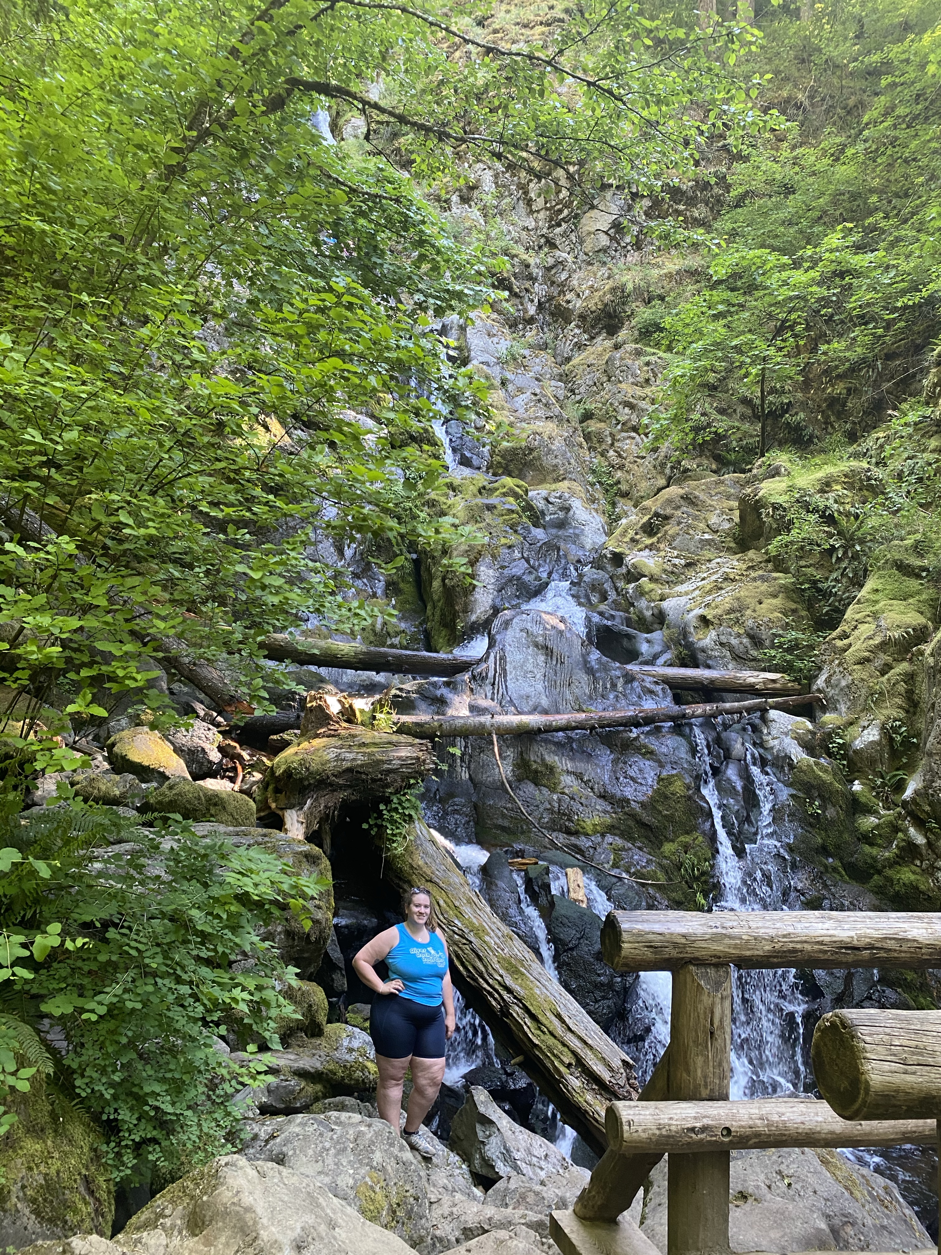 My husband and I did this trail on a holiday Monday (Memorial Day). Thankfully, we planned for it to be busy and pulled into the lot at 8:30 am. We ended up parking at the overflow picnic area lot as the parking directly next to the trailhead was already full. By the time we walked down to pay and brought it back to our car the overflow lot was also full. Surprisingly, the trail did not seem too overwhelmed with people despite the car situation. This was our first hike together since moving to the Pacific Northwest, so we took it easy, and I did not wear my watch to time the distances. The first couple of hikes back into a weekly hiking routine always take way more out of me and I did not want to feel discouraged, ‘slow and steady gets you to the falls’ was my motto!