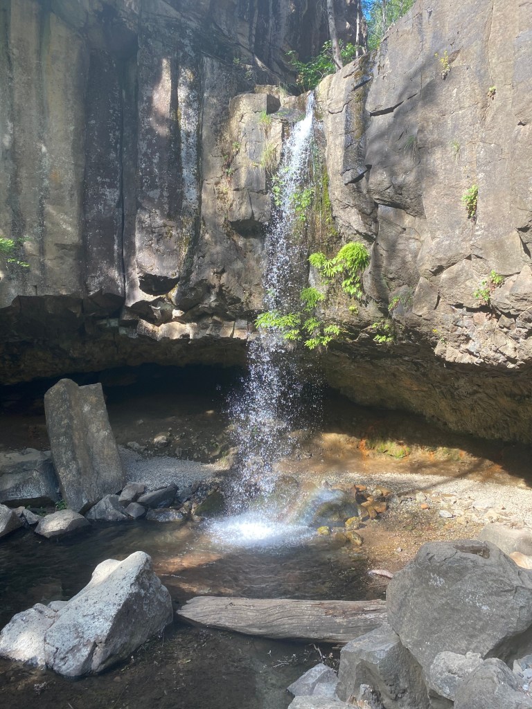 The base of the falls is really special. There are a lot of larger rocks surrounding it for a nice area to spread out and enjoy. The water form the falls also pools into a great little shallow swimming hole before continuing along the creek. Be aware the whole area is pretty small and would get crowded quickly. If you are looking for a great place of water to enjoy for an extended period of time this might not be the most enjoyable. My favorite part is that there is a small cave carved out behind the falls and the trail takes you around and behind Hedge Creek Falls. Its such a unique view.